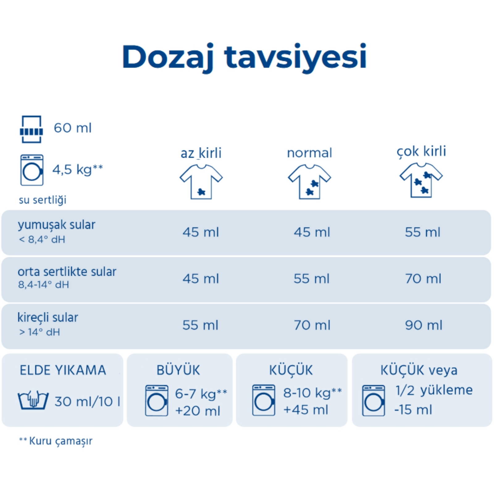 İçerik: Enzimler, optik parlatıcılar, kokular (Benzizotiyazolinon, Fenoksietanol, Pirityon Sodyum).