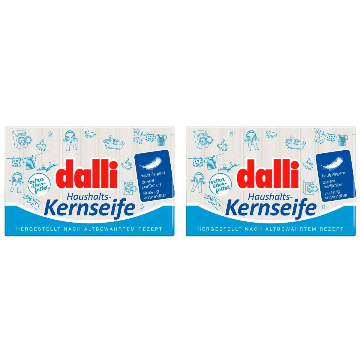 Hafif bir kokuya sahip dalli ev tipi kalıp sabun, kirli çamaşırların yanı sıra hassas ciltleri de temizler ve bakım yapar.