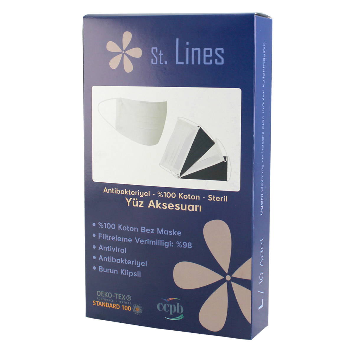 St Lines Antibakteriyel Kumaş Maske - Large - ( 10'lu Paket )